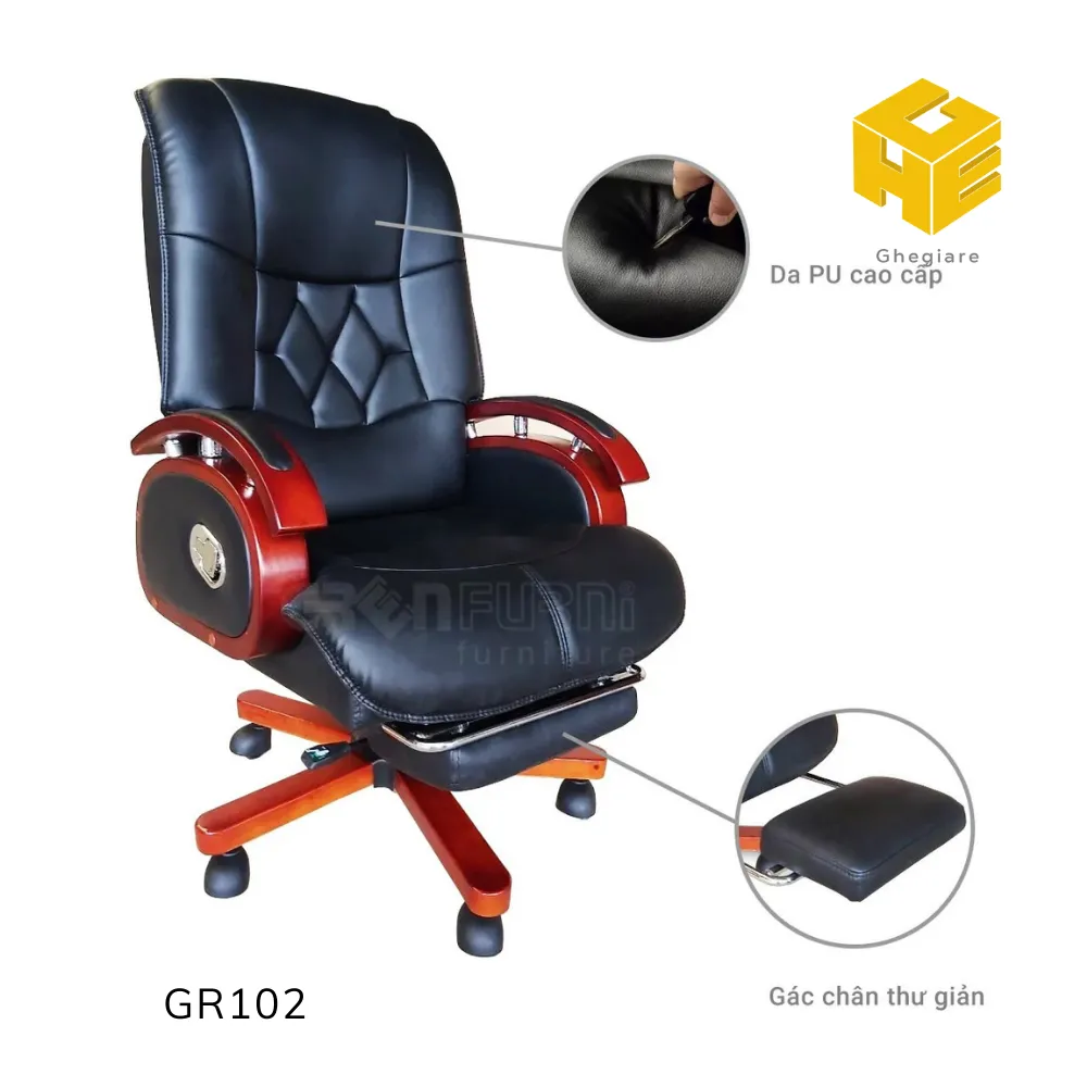 Dòng sản phẩm Ghế làm việc da nhập khẩu có gác chân GR102 thuộc dòng ghế cao cấp cho văn phòng, Với thiết kế theo phong cách hiện đại, phù hợp với mọi không gian làm việc.