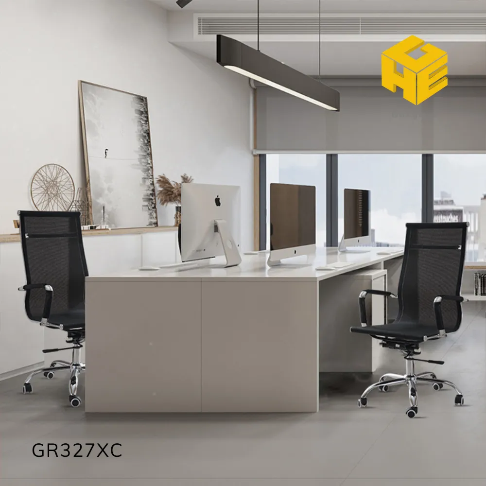 - Ghế làm việc lưới lưng cao giá rẻ GR327XC cấu tạo tựa lưng cao qua đầu, kết cấu lưới nhiều lớp liền nhau tạo thành đường cong ôm sát lưng, nâng đở cột sống vùng thắt lưng đảm bảo khi ngồi làm việc.
